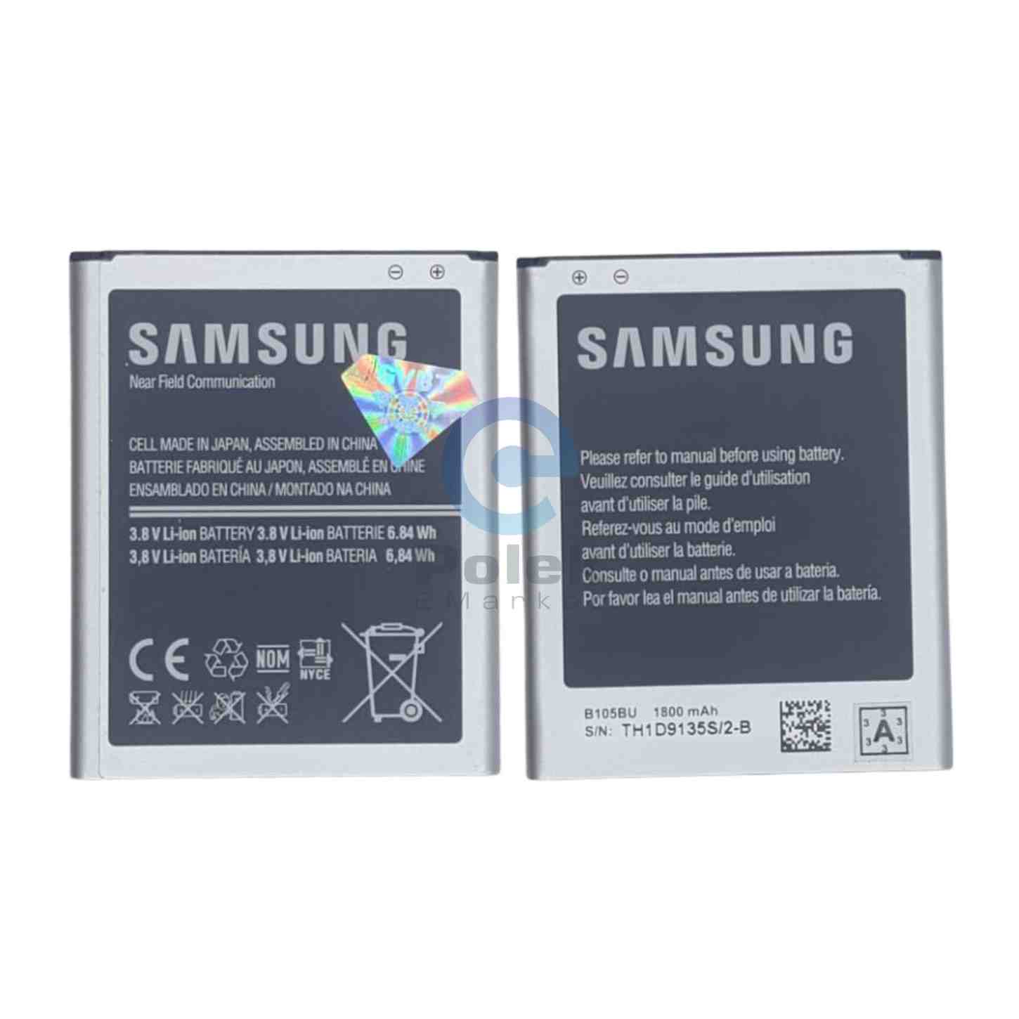 The B105BU is a reliable Samsung Li-ion standard battery designed for select Samsung smartphones, including the Galaxy Ace 3 LTE (GT-S7275 series) and Galaxy Light (SGH-T399). With a capacity of 1800mAh and a voltage of 3.8V, it delivers stable and efficient power for calls, messaging, and daily smartphone use. Featuring Near Field Communication (NFC) capability, this battery ensures secure connectivity and is an ideal replacement for worn-out or damaged batteries to restore your device’s original performance.