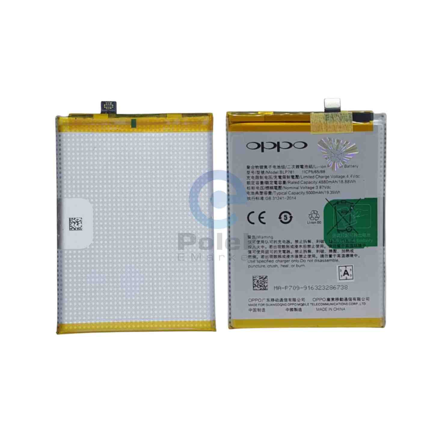 The BLP781 is a high-quality Lithium-ion (Li-ion) battery manufactured for OPPO smartphones, including the Oppo A52, A72, and A92 models. With a rated capacity of 4880mAh and a typical capacity of up to 5000mAh, it delivers long-lasting and stable power for calls, browsing, gaming, and multimedia use. Featuring a nominal voltage of 3.87V and a limited charge voltage of 4.4V, this battery ensures safe and efficient charging, making it an ideal replacement to restore your device’s original performance.