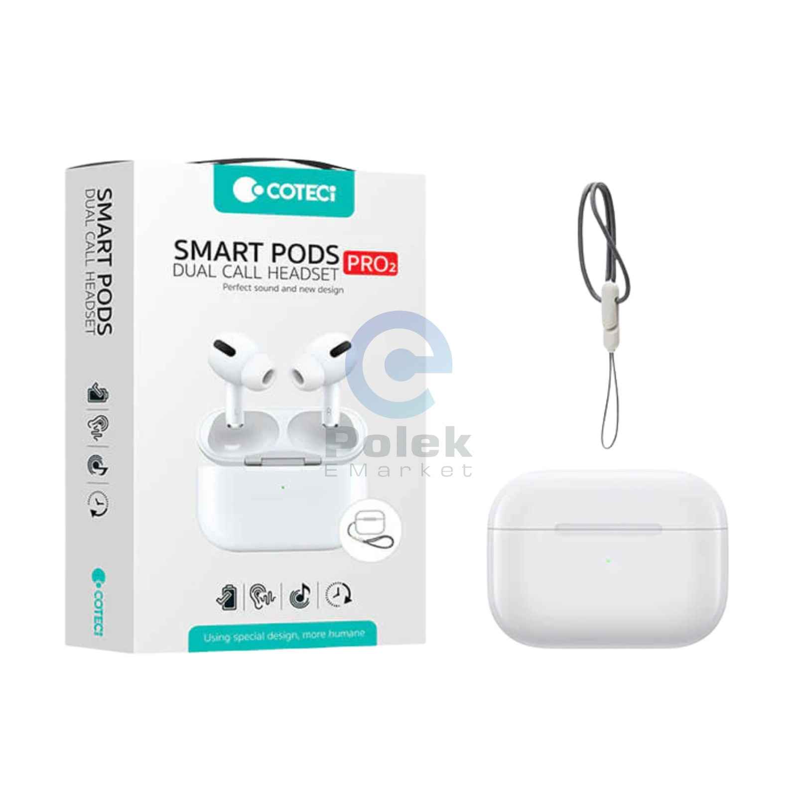 The COTECi Smart Pods Pro2 Dual Call Headset is a modern wireless audio solution designed for seamless connectivity and immersive sound. Featuring Bluetooth 5.0 technology, it ensures a stable and fast connection within a 10-meter range. With Active Noise Cancellation (ANC), it delivers clear audio by reducing background noise, making it perfect for calls and music.