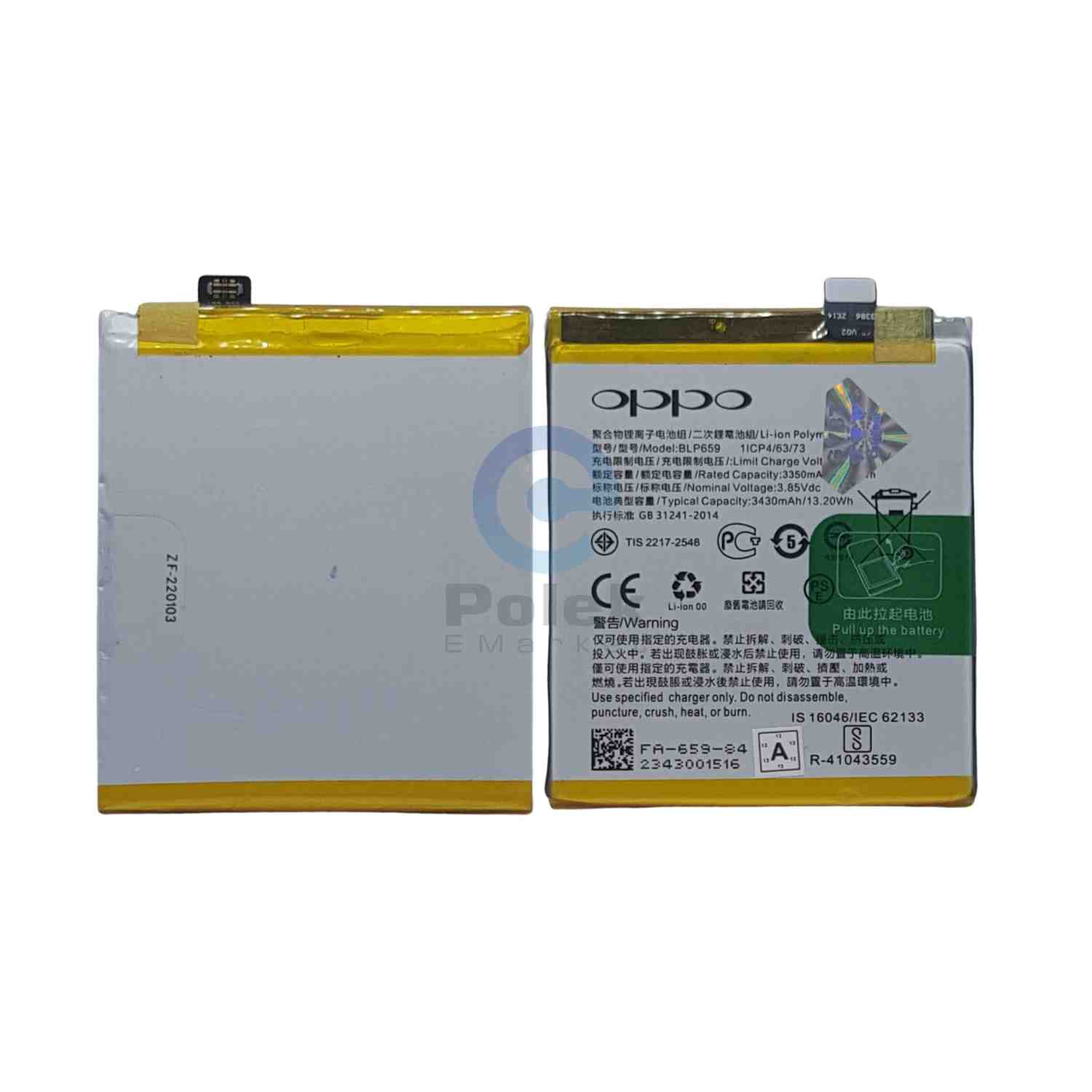 The BLP659 is a high-quality Li-ion Polymer replacement battery designed for the OPPO R15 Pro smartphone. It delivers reliable and efficient performance with a typical capacity of 3430mAh, ensuring smooth daily usage and improved standby time. Built with advanced lithium-polymer technology, it operates at a stable nominal voltage of 3.85V and supports safe charging up to 4.4V. This battery is an ideal replacement solution for restoring original battery life and maintaining consistent device performance.